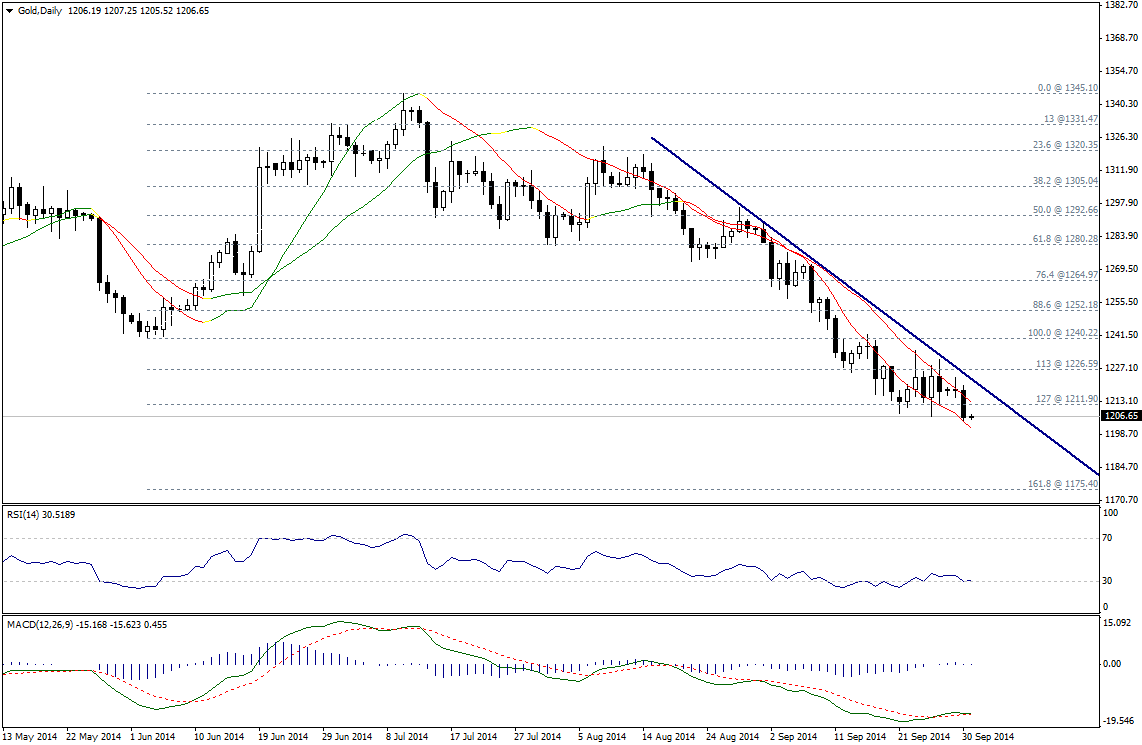 Мы стали свидетелями дневного закрытия ниже уровня 1211,90 (127,2% коррекции Фибоначчи), стабильность ниже которого указывает на усиление понижательного давления на металл. Сегодня, при поддержке от отрицательных лини Линейной регрессии, мы ожидаем попытку пробоя психологически важного уровня 1200,00 и движение к следующей цели на уровне 1182,45 и возможно 1175,40.
