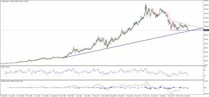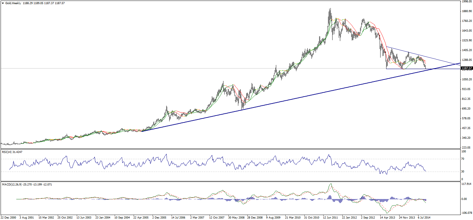 На прошлой неделе Золото резко снизилось пробив психологически важный барьер на уровне 1,2000. Если посмотреть на недельный график то можно заметить, что цена приближается к уровню поддержки долгосрочного восходящего движения, в данный момент находящимся на уровне 1160,00, и этого уровня будет зависеть дальнейшая судьба металла. С другой стороны, на этой неделе мы зависим от уровня поддержи 1175,40, пробой которого необходим нам для дальнейшего снижения.
