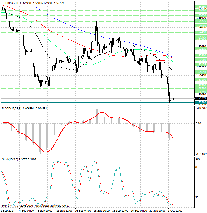 Курс валюты по-прежнему расположен значительно ниже скользящих средних с периодами 34, 55, 89 и 144, которые направлены вниз и указывают на сохраняющиеся медвежьи настроения (в среднесрочной перспективе), а также являются рядом уровней сопротивления 1.6170, 1.6235, 1.6265 и 1.62675.