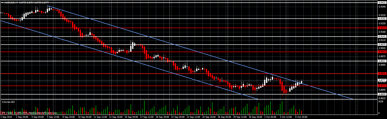 В текущей ситуации, когда пара протестировала верхнюю границу среднесрочного нисходящего канала R1 синего цвета, и пытается закрепиться выше нее, я бы советовал воздержаться от шортов. Единственные продажи, которые могут быть актуальны, это после теста сопротивления 0.8831, где скорей всего появятся крупные статические медведи. Стоп приказы по таким позициям необходимо выставлять выше 0.8831, а первой целью по фиксации прибыли нужно обозначить в районе 0.8731. В случае повторного возврата AUDUSD к 0.8659, можно будет рассуждать на тему дальнейшего медвежьего тренда по паре, который без сомнения продолжиться через некоторое время.