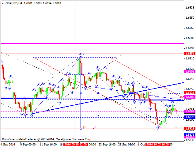 Здесь, мы продолжаем следить за формированием потенциала для верха от 6 октября. Краткосрочное восходящее движение, ожидаем в коридоре 1.6098 – 1.6134, а также консолидацию цены. Пробой уровня 1.6136 должен сопровождаться развитием направленного движения здесь цель – 1.6212. Краткосрочное нисходящее движение, возможно в коридоре 1.6021 – 1.5995, пробой последнего значения будет располагать к развитию нисходящей структуры, в данном случае цель – 1.5947. Основная тенденция – формирование потенциала для восходящего движения от 6 октября.