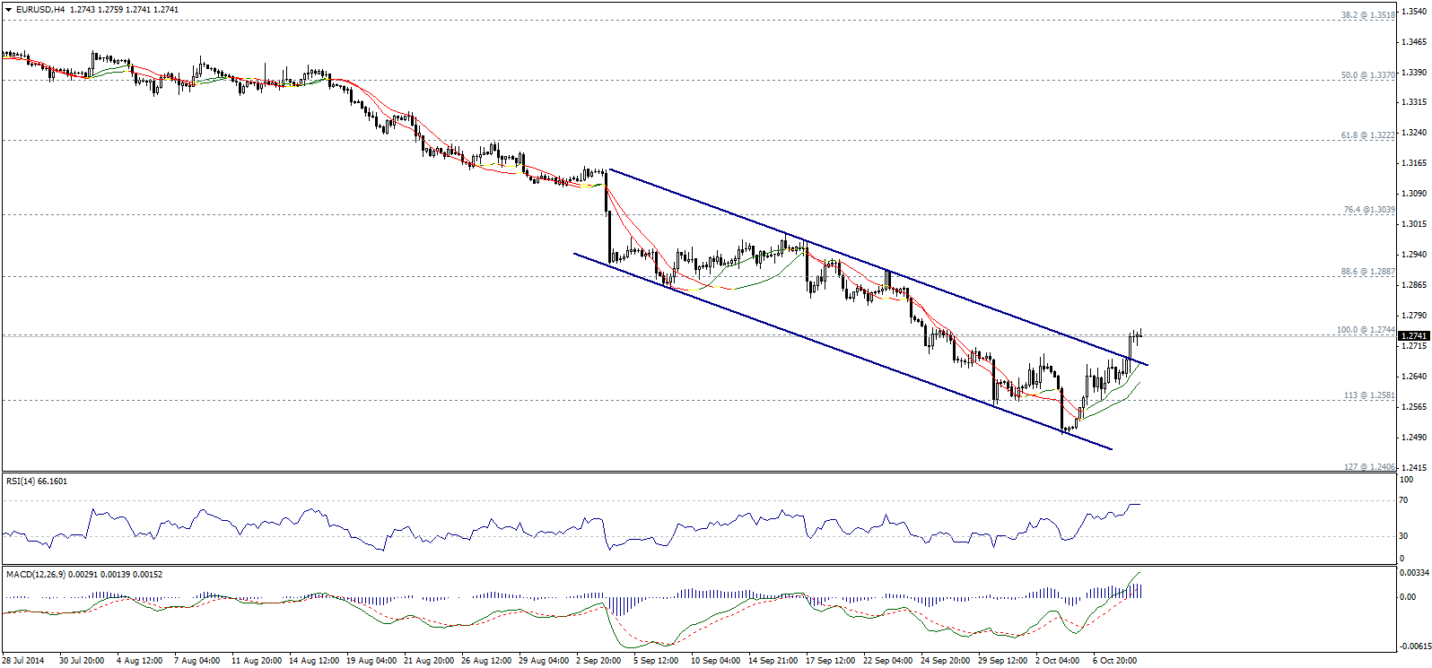 После публикации протокола заседания ФРС, пара резко вросла пробив уровень сопротивления 1,2700. Сегодня пара торгуется стабильно выше данного уровня, что наряду с позитивными линиями Линейной регрессии и положительным MACD, усиливает возможность дальнейшего роста. На текущий момент наша первая цель находится на уровне 1,2785, пробой которого распространит позитивную динамику к области 1,2825 и возможно 1,2885. Имейте ввиду, что возвращение под уровень 1,2660 отменит бычий сценарий.
