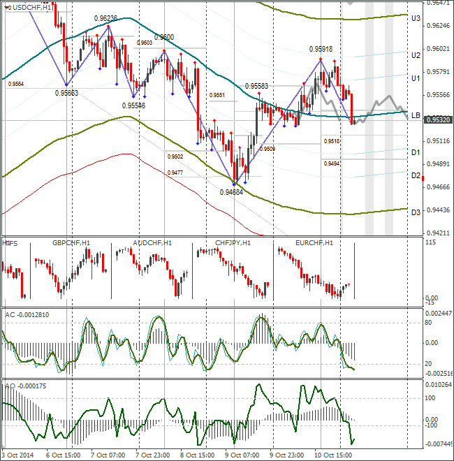 В пятницу курс доллар/франк вырос до 0,9591 и сегодня вернулся к линии lb. Сегодня понедельник. Учитывая, что в Японии, США и Канаде выходной день, а календарь пустой, то закрытия дня от USDCHF ожидаю консолидацию около линии lb.