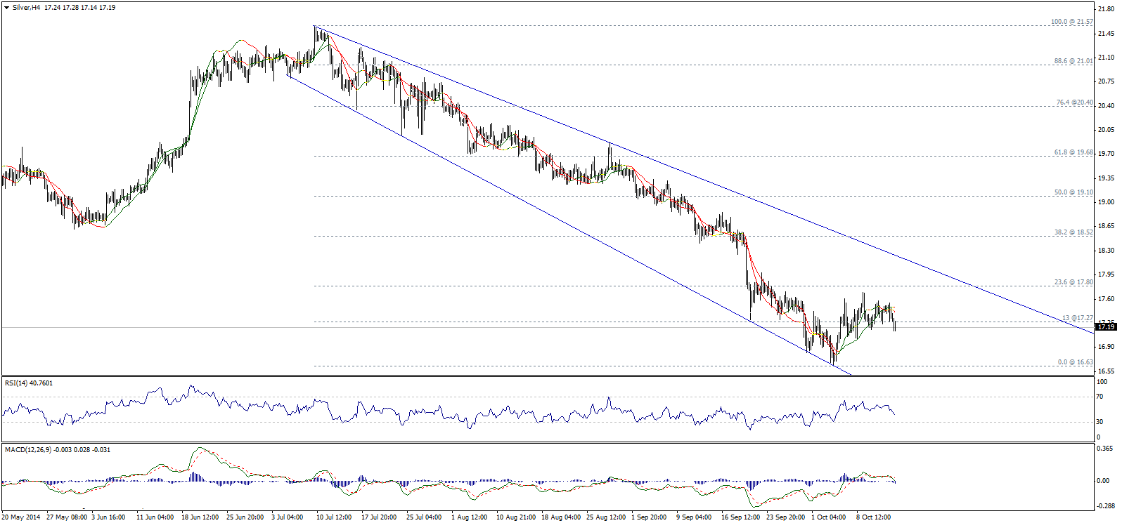 Вчера Серебро резко снизилось пробив уровень 17,27, что привело к отмене бычьего сценария, и хотя цена все еще находится выше уровня 17,00, мы видим четкие отрицательные сигналы MACD и RSI, что наряду с отрицательными линиями Линейной регрессии указывают на дальнейшее снижение металла с пробоем уровня 17,00. Тем не менее, мы предпочитаем дождаться прорыва, прежде чем присоединяться к движению.