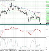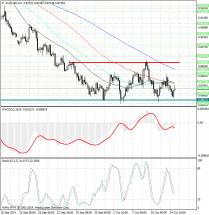 Курс валюты закрепился ниже скользящих средних с периодами 55, 89, 34 и 144, которые являются уровнями сопротивления 0.8760/65 и 0.88425.