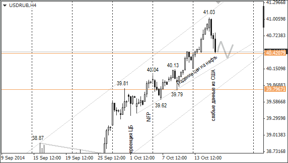 На американской сессии курс доллар/рубль снизился с максимума 41,03 до 40,44 после публикации макроэкономических данных в США. Разочаровывающая статистика стала спусковым крючком к закрытию длинных позиций по доллару. Розничные продажи и производственная инфляция оказались ниже ожиданий.