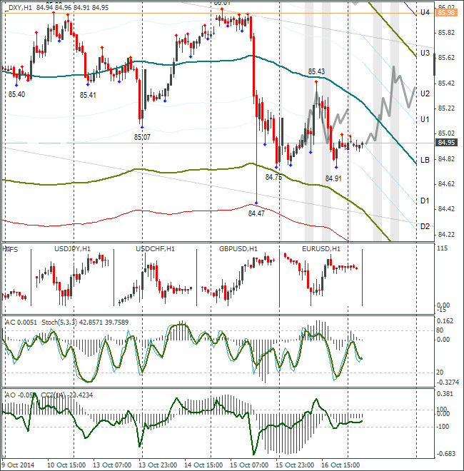 Экономический календарь на европейскую сессию пустой, поэтому по прогнозу рассматриваю рост индекса доллара. Я ранее в обзорах писал, что по циклам у меня получается ралли доллара с понедельника (20.10). Но поскольку в понедельник я всегда рассматриваю движение против пятницы, то сегодня ему надо улететь вверх, либо провести день в диапазоне 50 пунктов.
