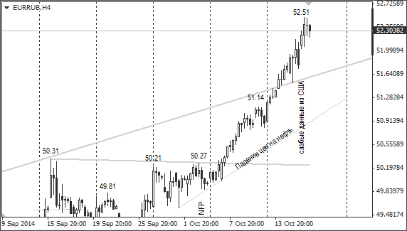 Долларовым быкам очень понравился уровень в 41 руб. Они используют любые новости, чтобы закрепиться выше этой отметки. Днём курс доллар/рубль обновил исторический максимум на 10 копеек, на 41,13, однако покупателям не удалось закрыть день выше 41 руб. На фоне падения американского доллара курс рубля восстановился до 40,86. Дополнительную поддержку российскому рублю оказал сырьевой рынок. Во второй половине дня курс нефти марки Brent отскочила от минимума 82,90 на 3,6 доллара, до 86,50.