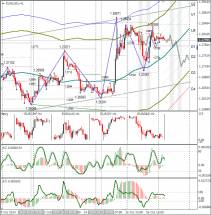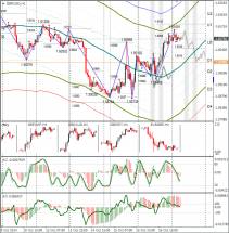 Евро упал на торгах в Европе даже ниже прогнозного уровня, до линии lb, но на фоне роста кроссов EUR/JPY и EUR/CHF смог вернуться к линии U3 на 1,2839. По прогнозу на пятницу рассматриваю возращение курса к 1,2706. Хотя, наверное, лучше было бы, чтобы сегодняшний день был не волатильным. Тогда в понедельник можно будет рассматривать падение евро на 100-120 пунктов. В любом случае на днях придётся ждать подтверждения окончания коррекции, когда CCI пересечёт сверху вниз +100.