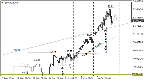 После встречи с В. Путиным в Милане президент Украины П. Порошенко заявил, что получилось достичь договоренностей по ключевым вопросам газового контракта. Лидер Украины надеется поставить точку в газовом вопросе 21 октября. Но вряд ли это окажет дополнительную поддержку российскому рублю в отличие от начала уплаты российскими компаниями налога на добавленную стоимость за 3 квартал 2014 г.