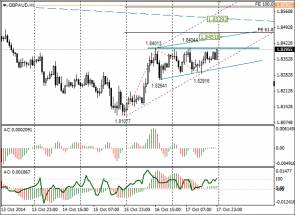 В конце недели на фоне восстановления основной пары GBP/USD и падения AUD/USD курс GBP/AUD восстановился с минимума 1,8107. С 16 октября фунт консолидируется под сопротивлением 1,8405. Техническая картина привлекательна тем, что формируется треугольная формация, из которой выход, скорее всего, будет вверх. По оценке Альпари можно предположить, что в понедельник или вторник уровень 1,84 будет пробит и рост GBP/AUD продолжится до 1,8451 и далее до трендовой линии – 1,8529. Идея краткосрочная, отменится при падении курса ниже 1,8264.