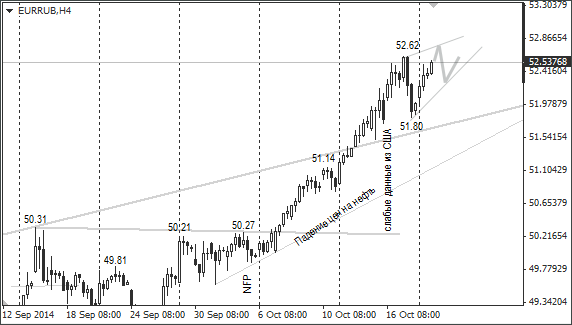 ЦБ РФ на поддержание рубля с начала октября потратил 531 млрд рублей или 13,148 млрд долларов. Учитывая, что доллар/рубль не откатывается с достигнутых максимумов больше чем 55 копеек, возросли риски уйти выше к 41,50. На фоне падения доллара и роста пары евро/доллар курс евро/рубль может с открытия торговой сессии обновить максимум. Цель для евро в 53 руб. остаётся на вторник и среду актуальной.