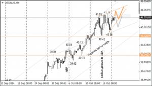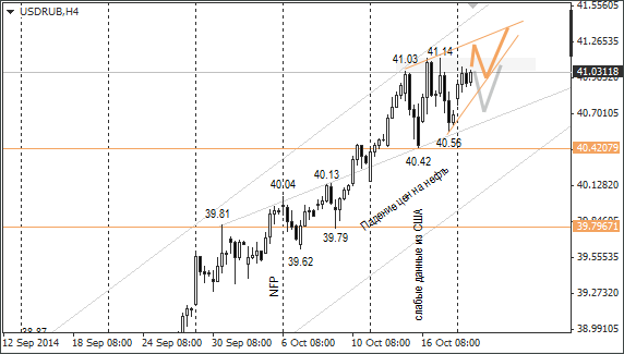 Курс доллар/рубль опять приблизился к зоне сопротивления 41,03-41,13. За недельную консолидацию с 15 октября покупатели аккумулировали силы для броска к 41,50. Возможно, контрнаступление начнётся завтра.