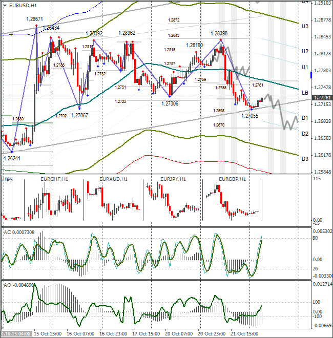 Во вторник курс евро/доллар поднялся до 1,2839 и к закрытию дня снизился до 1,2705. Падение получилось даже дальше больше, чем ожидал. Пара вернулась к трендовой линии, чем повысила вероятность дальнейшего падения. Чтобы евро вернуться к 1,25, по ценовой модели на текущем уровне останавливаться нельзя. Чем активней продавцы будут с открытия Европейской сессии, тем лучше для них. Не исключаю, то под 1,27 у трейдеров размещены стопы по длинным позициям. Если их зацепить, то пара быстро снизится до 1,2670. В прогнозе не учитывал минутки Банка Англии и инфляционные данные по США.