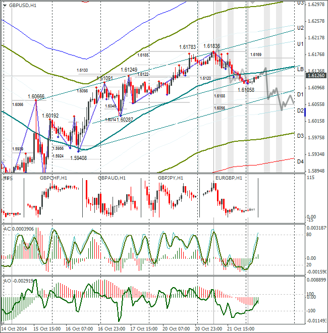 Во вторник, 21 ноября, пара фунт/доллар откатилась к основанию 61-й фигуры, однако развития заходного импульса вниз, в качестве третьей волны младшего волнового уровня, не последовало. Насыщенность новостного фона будет способствовать росту волатильности, и как следствие фиксация котировок пары под психологическим уровнем поддержки 1.6100 укажет на способность пары продолжить снижение в рамках усложнённой волны «(ІІІ)».
