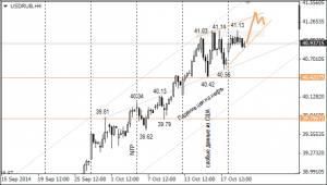 Пара доллар/рубль несколько дней торгуется под уровнем 41 руб. и не может пройти сильное сопротивление. Создаётся видимость, что давление на рубль немного ослабло. Но это иллюзия. Покупатели накопили силы, и сегодня доллар может совершить прорыв к 41,30 и далее к 41,50.