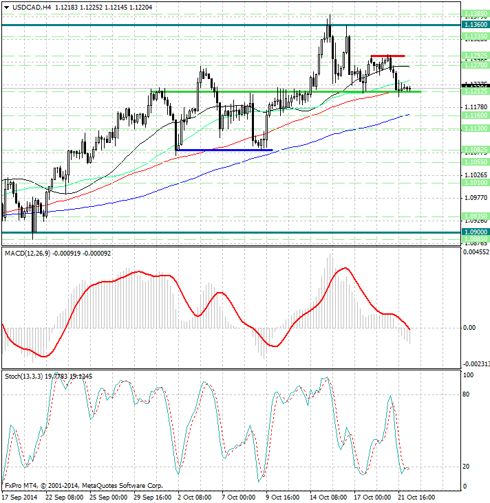 Курс валюты зажат между скользящих средних с периодами 55 и 34 (уровни сопротивления 1.12375 и 1.12675) с одной стороны и средней с периодом 144 (уровень поддержки 1.11625) с другой, и в данный момент слился со средней с периодом 89.