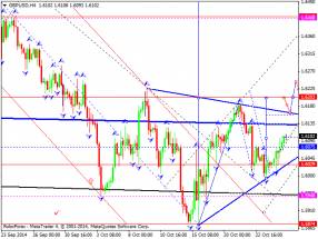 Покупатели фунта недолго думали, что им делать после выхода первых предварительных данных по росту ВВП Великобритании, который хоть и оказался немного слабей, чем во втором квартале, однако указывает на продолжение роста экономики страны. Свечной индикатор Heiken Ashi нарисовал нам в пятницу несколько средних белых свечей, в которых находилось хорошее, для этого дня, количество объема, что привело к закреплению фунта, а точнее его попыткам, выше сопротивления 1.6083. Будет ли оно удачным, покажет сегодняшний день.
