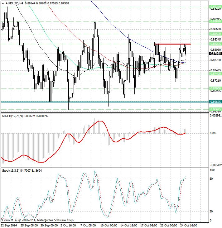 Несмотря на два одинаковых и четких сигнала, в качестве подтверждения того, что на рынке форекс в данной валютной паре могут усилиться бычьи настроения, нам необходимо дождаться пробоя сильного уровня сопротивления 0.88225, который может открыть путь к уровням 0.8885 и 0.8925.
