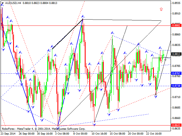 большую часть прошлой пятницы в данной валютной паре доминировали бычьи настроения, в тоже время, курс валюты вновь встретил существенное сопротивление возле уровня 0.88225...