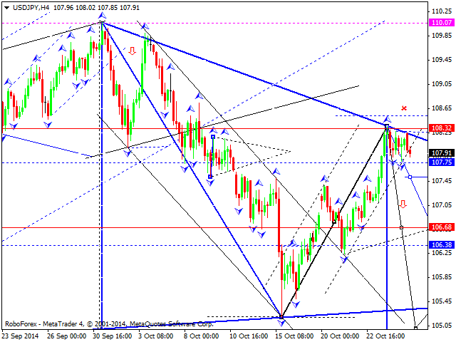 Пара доллар/иена продолжила северное движение, увеличившись почти на 120 б.п. Уровень 108.30 был пробит. Несмотря на то, что динамика развития северного движения достаточно высокая, вся волновая структура, которая была сформирована от минимального значения 15 октября, имеет вид коррекционных волн. Поэтому, вероятно, четвертая волна усложнится еще больше. Однако вариант перехода этой серии волн в начало пятой волны все еще остается актуальным.