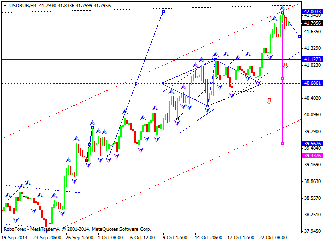 Российский рубль торгуется у верхней границы канала роста. На сегодня рассматриваем развитие консолидации с понижением к уровню 41.12. Далее ожидаем возврат к уровню 41.60. Затем рассмотрим возможность продолжения снижения как коррекцию. Очередная цель рассматривается на уровне 40.68.