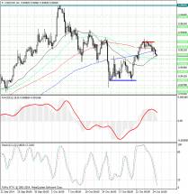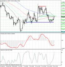 Курс валюты зажат между скользящей средней с периодом 144 (уровень сопротивления 1.6130) с одной стороны и средних с периодами 34, 89 и 55 (ряд уровней поддержки 1.6090, 1.60675 и 1.60525) с другой.