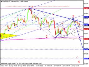 курс валюты встретил существенное сопротивление возле уровня 0.9545, с прошлой пятницы в данной валютной паре доминируют медвежьи настроения...