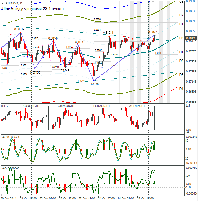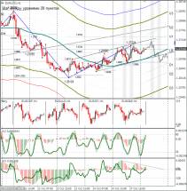 Курс AUDUSD в понедельник целый день простоял под сопротивлением. Сегодня предпринималась ещё одна попытка выйти их треугольника, но пока безуспешно. Прогноз не делаю, жду выхода цены из диапазона.