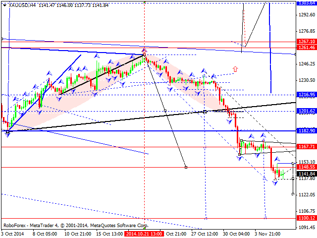 Золото на минимумах продолжает формировать консолидацию. На сегодня рассматриваем возможность пробоя консолидации вверх и возврат цены к уровню 1167. Как альтернативу не исключаем снижение с пробоем вниз. Очередная цель снижения - на уровне 1100.