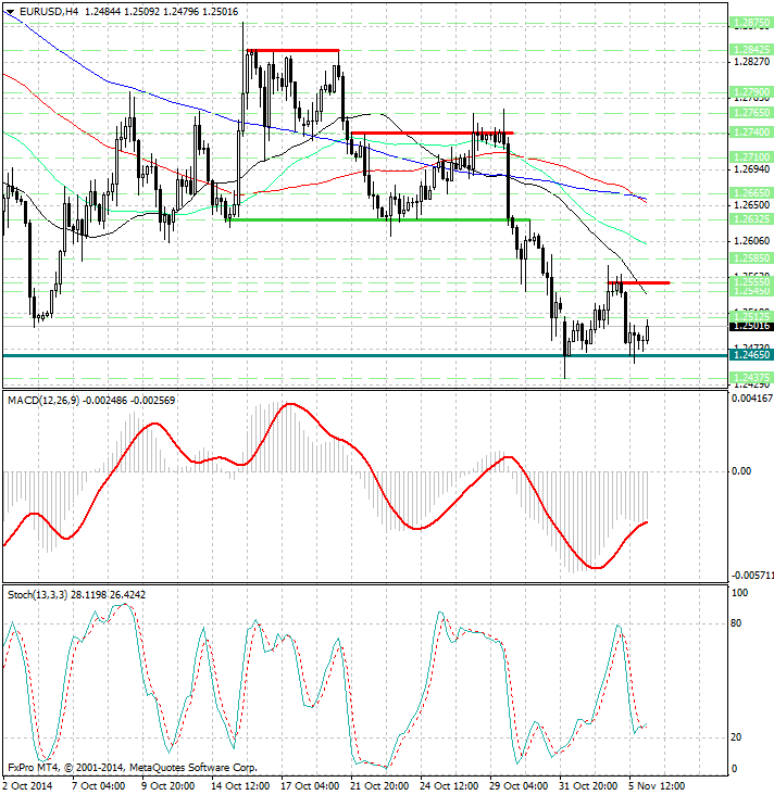 с одной стороны курс валюты встречает существенное сопротивление возле уровня 1.2555, с другой - находит ощутимую поддержку возле уровня 1.2465...