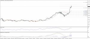 Осциллятор стохастик вплотную приблизился к зоне перекупленности и формирует аналогичный сигнал, поскольку линия %К поднимается выше линии %D.