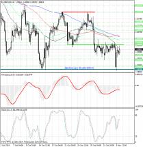 Курс валюты по-прежнему расположен существенно ниже скользящих средних с периодами 55, 144 и 89, которые направлены вниз и указывают на сохраняющиеся медвежьи настроения (в среднесрочной перспективе), а также являются рядом уровней сопротивления 1.60325 и 1.6050/55, и в данный момент практически слился со средней с периодом 34.