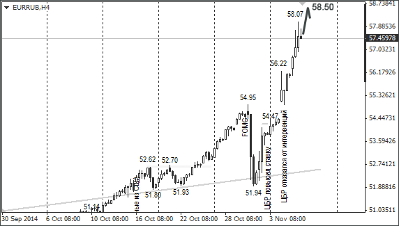 Отсутствие дополнительных интервенций регулятора усилило давление на рубль и он уже падает по инерции. Быки вошли во вкус и по тренду выкупают все откаты. ЦБ создал все условия для продажи рубля, хоть и оставил за собой право проведения дополнительных интервенций в случае появления угроз для финансовой стабильности. Вот спекулянты и гонят курсы доллара и евро вверх, чтобы проверить на каком ценовом уровне находится угроза финансовой стабильности. Если интервенции в 2-3 млрд долларов не помогали остановить падение рубля, вербальные интервенции зампреда ЦБ Ксении Юдаевой точно не помогут.