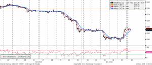 Курс USD/HUF отступил с 250,50 до 248,04. Индикатор АС и АО находятся в положительной зоне. CCI пытается пересечь сверху вниз уровень +100. Дневная техническая картина начинает складываться в пользу продавцов. Можно рискнуть поработать против тренда минимальным объёмом.