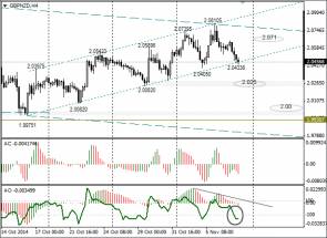 Обратите внимание на четырёхчасовой график. С середины октября имеем восходящий канал диапазоном в 400 пунктов. В среду в ожидании заседания Банка Англии курс GBP/NZD вырос до 2,0810. После оглашения решения по процентной ставке и пятничного NFP пара вернулась к 2,0456.