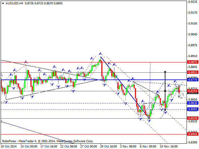 Австралийский доллар к доллару США торгуется у вершины третьей структуры роста. Рассматриваем формирование консолидации как фигуру продолжения. Ожидаем сегодня выход вверх на перекрытие уровня 0.8815. Далее рассмотрим возврат на уровень 0.8700.
