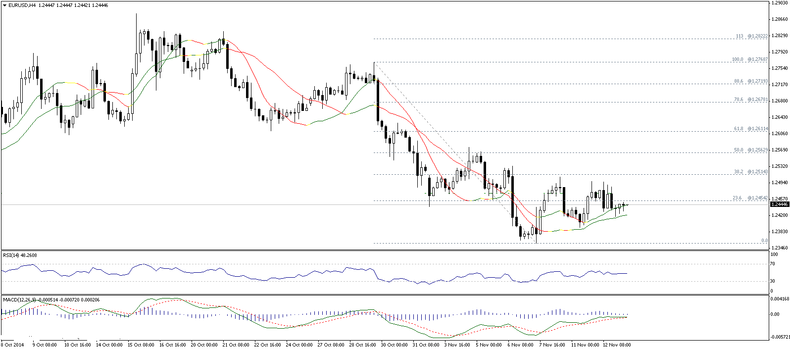 Обратив внимание на 4х часовой график можно заметить, что быкам вновь не хватило сил для пробоя сильного уровня сопротивления 1.2485...