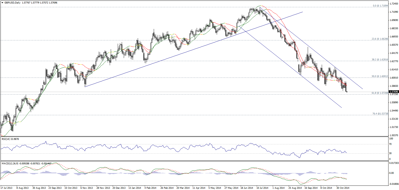курс валюты встретил существенное сопротивление возле уровня 1.5930, со второй половины дня среды продолжаются активные продажи британского фунта (GBP), которые привели к падению котировок в область 14-месячных min.