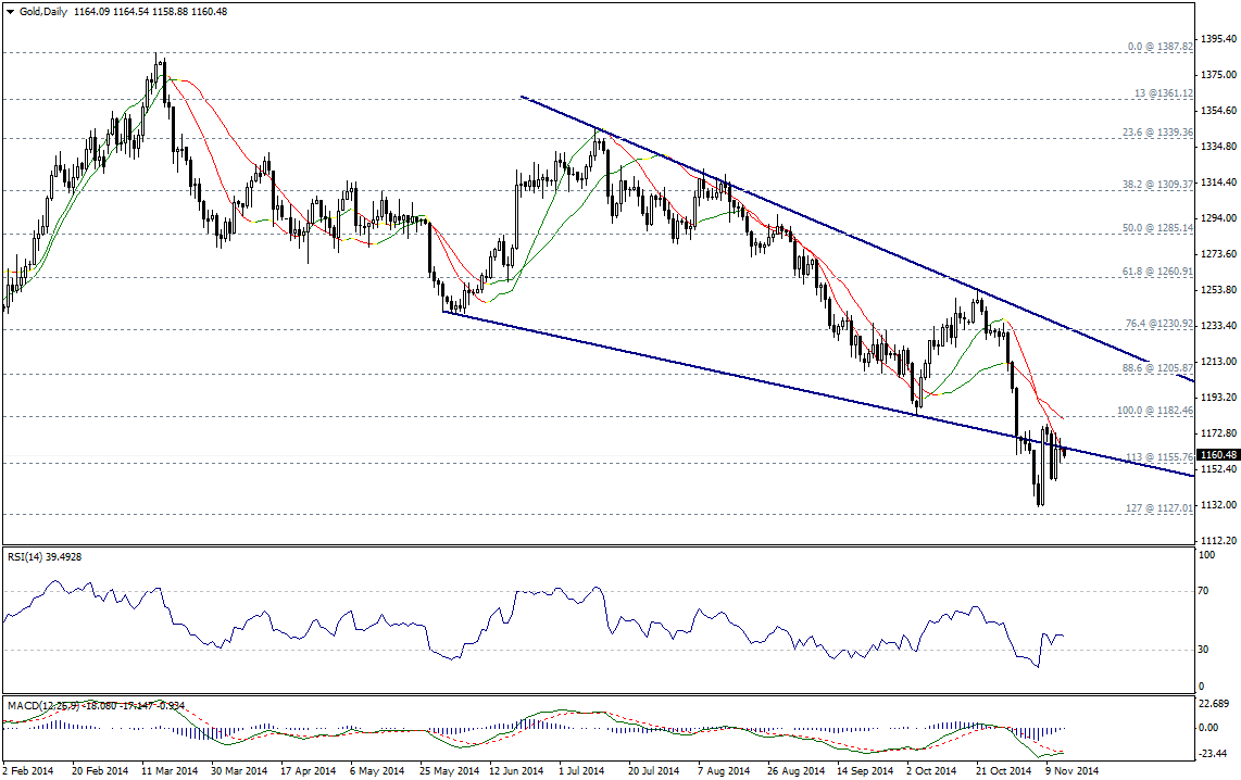 Золото торгуется в узком диапазоне ниже уровня поддержки нисходящего канала и ниже лини Линейной регрессии 34 и 55. В целом, учитывая эти факторы и торговлю ниже уровня 1176,75 мы ждем расширения нисходящего движения, однако для доказательства своей силы медведям необходим пробой уровня 1155,75.