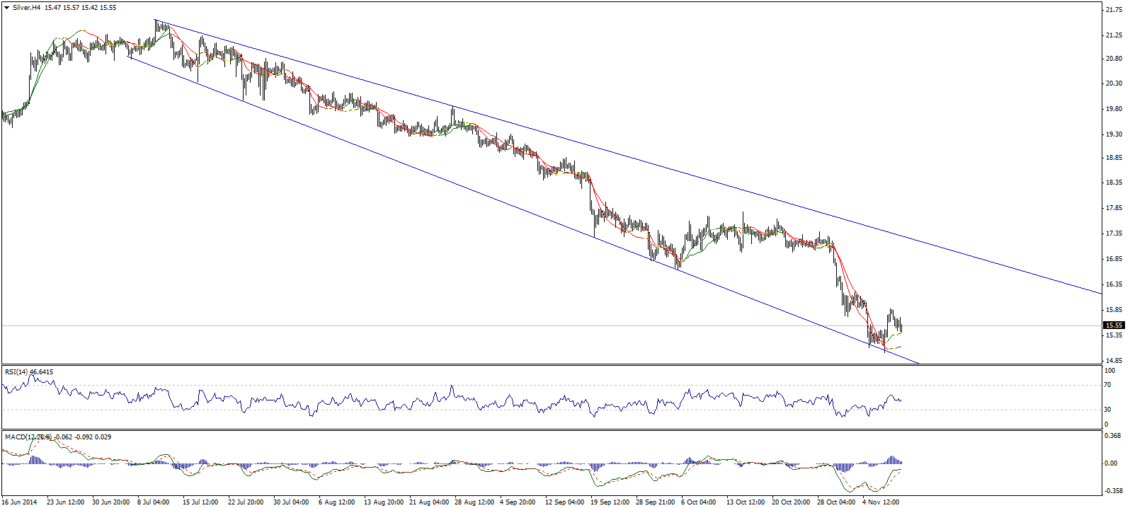 Серебро стабилизировалось выше линий Линейной регрессии 34 и 55, что указывает на возможность его дальнейшего роста для подтверждения которого, тем не менее, нам необходим пробой уровня сопротивления 15,84, что приведет к образованию положительного кроссовера на MACD. Имейте ввиду, что снижение под уровень 15,00 отменит бычий сценарий.