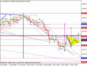 Золото продолжает торговаться в консолидационной структуре "Вымпел". С выходом вверх рассмотрим реализацию потенциала на отработку уровня 1208.С выходом вниз рассмотрим снижение на отработку уровня 1100.