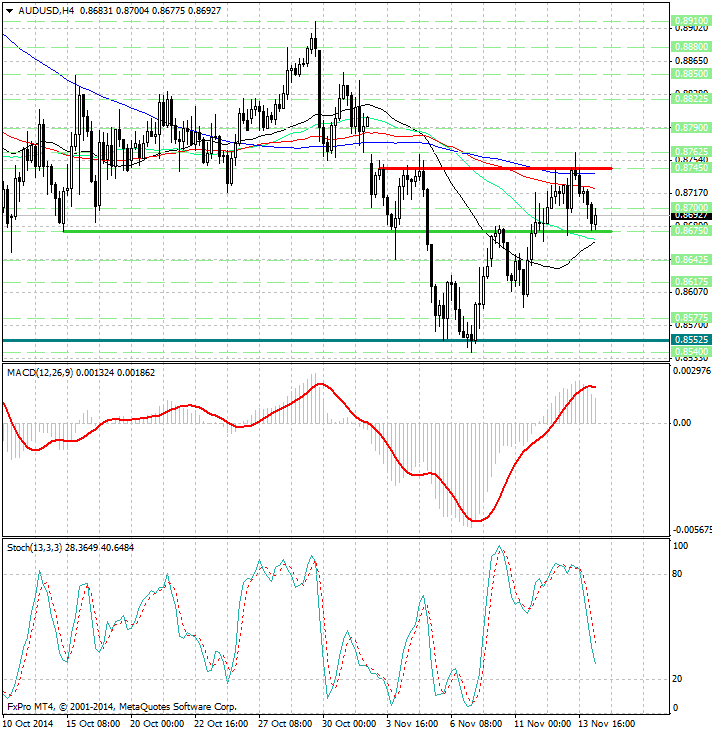 с одной стороны курс валюты встречает существенное сопротивление возле уровня 0.8745, с другой - находит ощутимую поддержку возле уровня 0.8675...