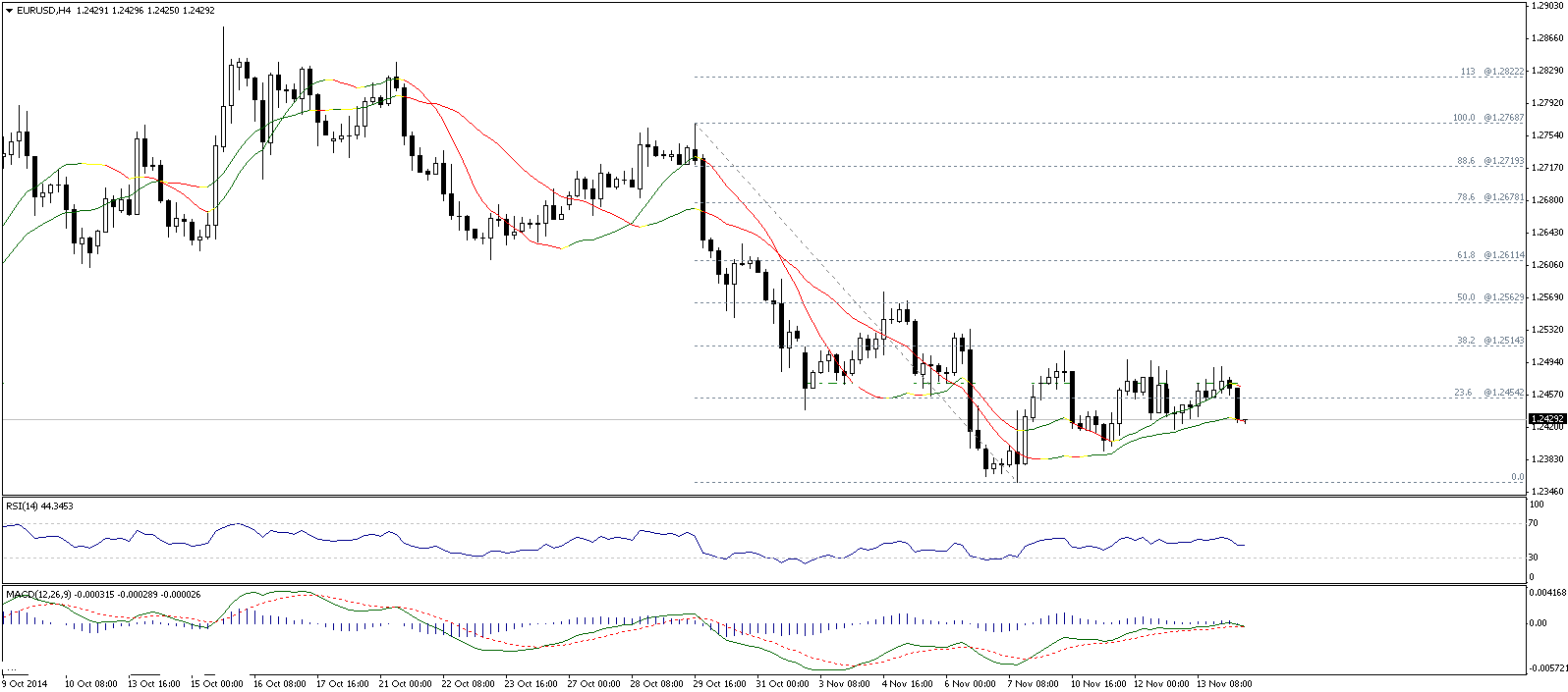 Обратив внимание на 4х часовой график можно заметить, что быкам вновь не хватило сил для пробоя сильного уровня сопротивления 1.2485...