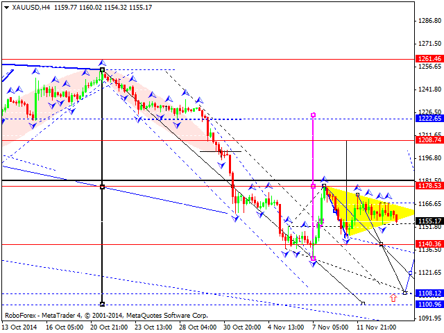 Золото пробило консолидационный "Вымпел" вниз. Такой сценарий предполагает развитие очередной волны снижения на перекрытие уровня 1140.40. Далее рассмотрим новую консолидацию с фигурой продолжения снижения на отработку уровня 1108.