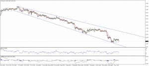Пробив уровень поддержки 1,5700, пара продолжает снижаться при поддержке от отрицательных линий Линейной регрессии. Учитывая эти факторы мы ждем тестирование следующей цели на уровне 1,5500 и при ее пробое области 1,5400.