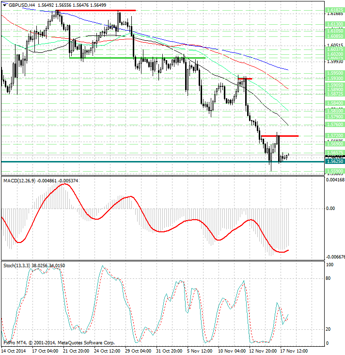 Вторым тестом для пары станет публикуемый вечером протокол заседания FOMC, на котором Федрезерв завершил программу QE3, повысил оценку рынка труда, но оставил фразу о «продолжительном периоде» низких ставок и высказал опасения по поводу низкой инфляции. Есть вероятность, что все эти тезисы будут более детально рассмотрены в рамках текущего протокола и могут вновь всколыхнуть волну интереса к доллару США. В таком случае GBP/USD может продолжить движение в район 1,56 и попытаться пробить ниже, однако на текущих уровнях потенциал падения ограничен.