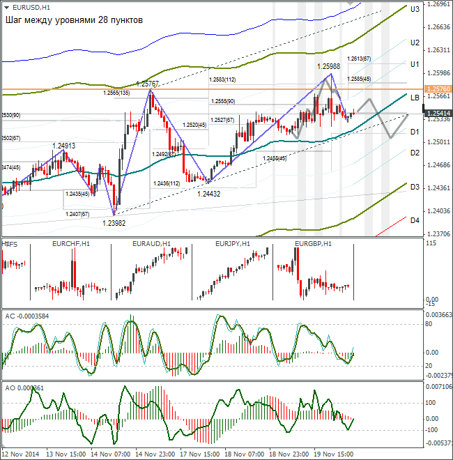 В среду индекс доллара снижался до 87,38. После выхода минуток FOMC он вернулся к линии lb на 87,70. Согласно данным протокола, ФРС США рассчитывает повысить процентную ставку в 2015 году. По итогам заседания 28-29 октября комитет по открытым рынкам ФРС США большинством голосов принял решение в конце октября завершить программу выкупа гособлигаций и ипотечных бумаг с рынка (QE3), а также сохранить процентную ставку на уровне 0-0,25% годовых. Регулятор оставил ключевую фразу о том, что может сохранить низкую ставку на длительное время после окончания программы по выкупу активов, если инфляция будет держаться ниже целевого уровня в 2%. Некоторые члены обеспокоены тем, что инфляция может оставаться ниже целевого уровня в течение длительного времени. Золото из-за низкой инфляции отреагировало снижением на протоколы.