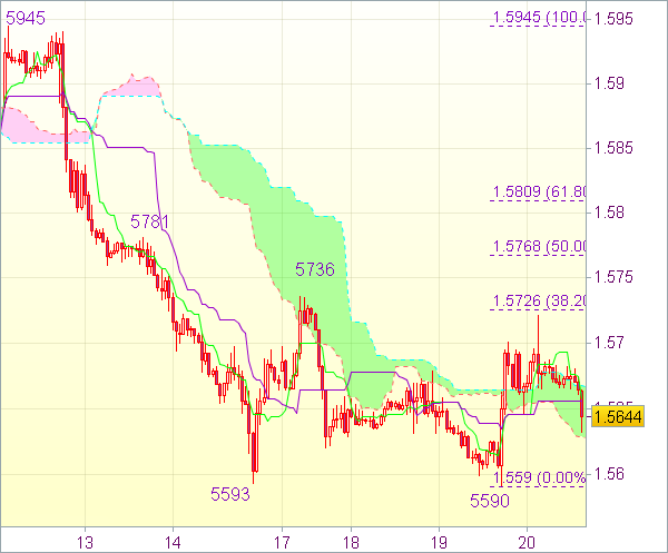 Свечной индикатор Heiken Ashi нарисовал нам несколько крупных белых свечей, которые в целом были ограничены сопротивлением в район 1.5711, где я советовал вчера открывать короткие позиции.