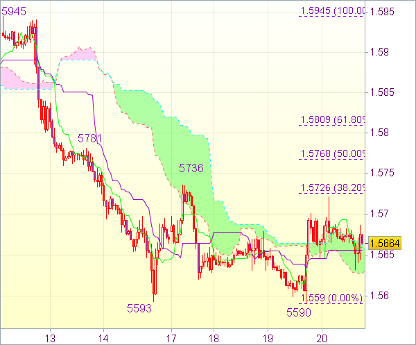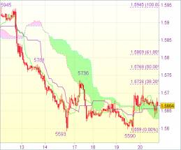 Поэтому предпочтительнее держать длинные позиции от 1,5640. Лишь прорыв поддержки 1,5590 аннулирует данный сценарий и укажет на возобновление недавней нисходящей волны. Падение может продлиться до 1,5560, а затем до 1,5540. Тем не менее движения заметно ниже 1,5515-20 не ожидается из-за ослабления импульса. Затем возможен очередной виток роста.